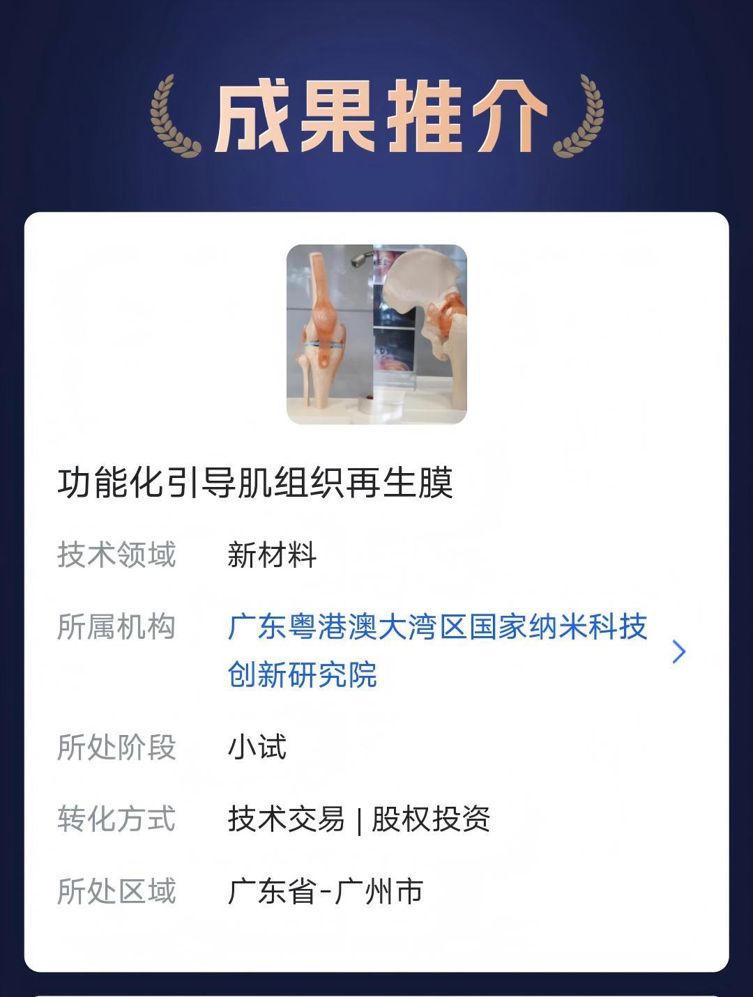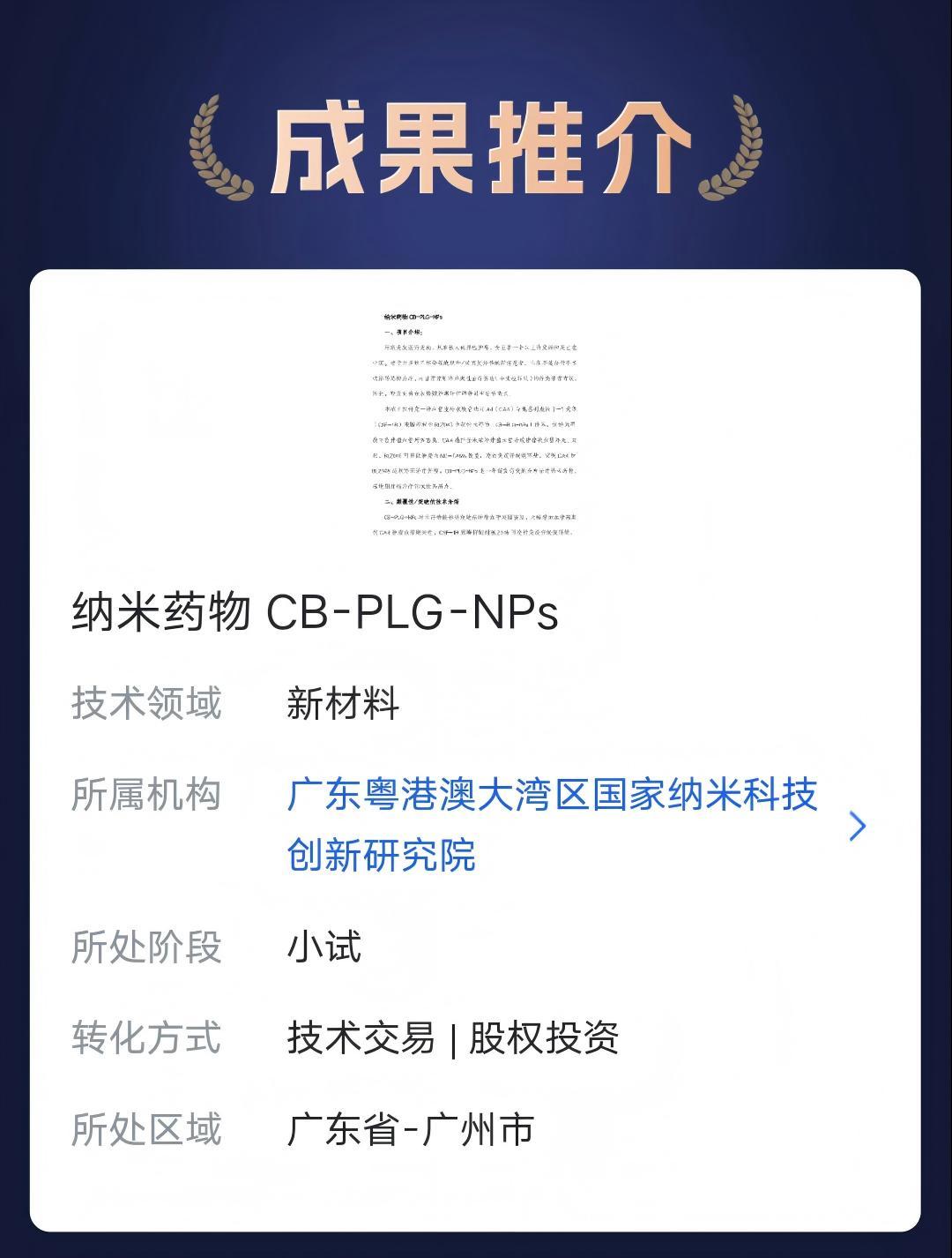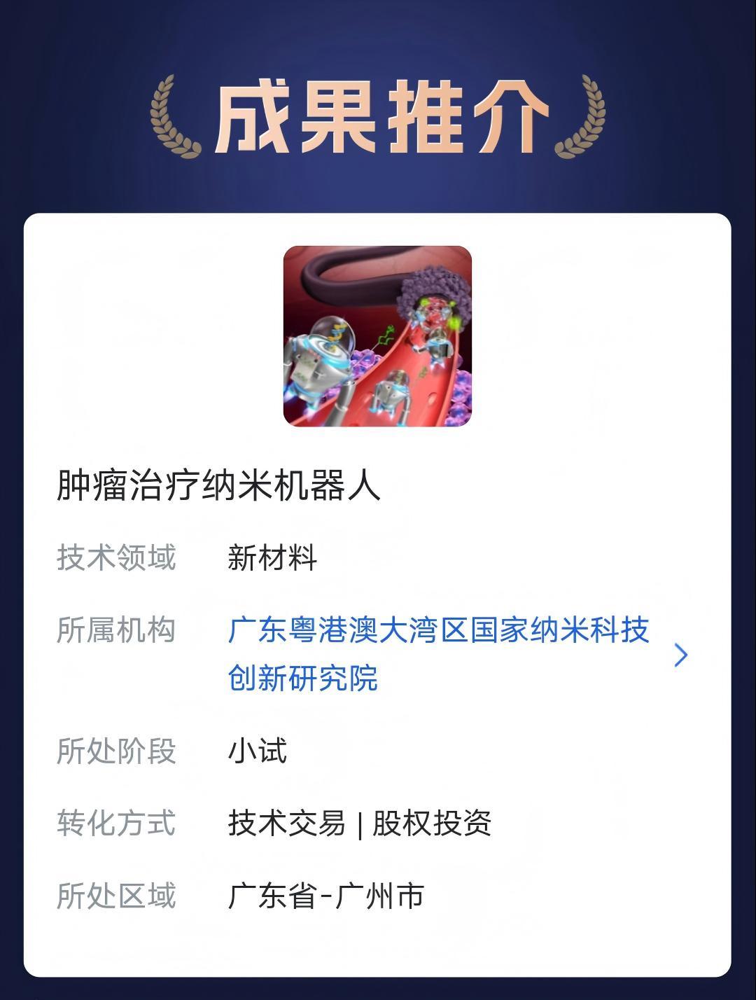 本期,我们特别推荐来自 广东粤港澳大湾区国家纳米科技创新研究院 的五项科技成果。欢迎进入“湾创成果转化”小程序关注了解,共同探索合作机会!