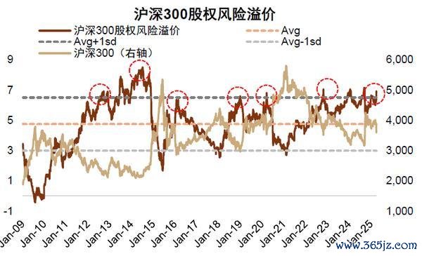 图表3:沪深300股权风险溢价处于较高水平。注:数据截至2025年4月7日 资料来源:iFinD,中金公司研究部